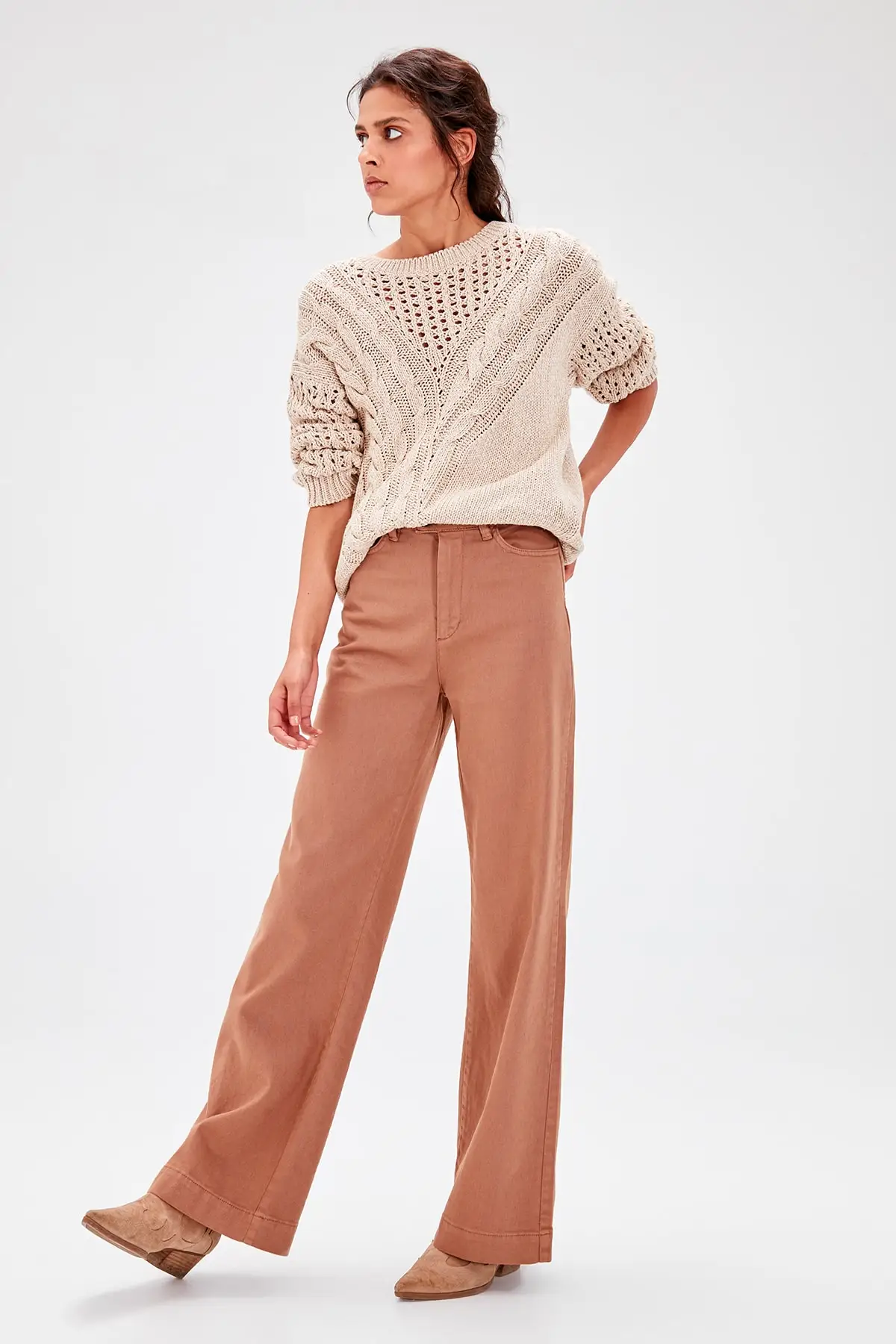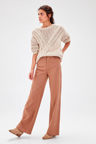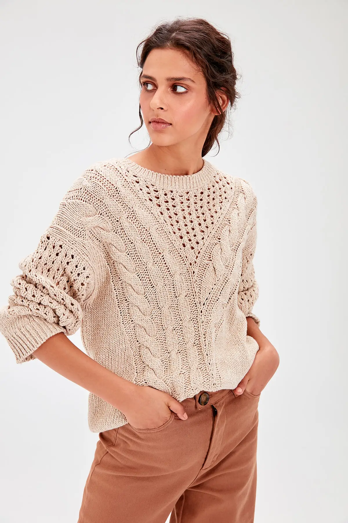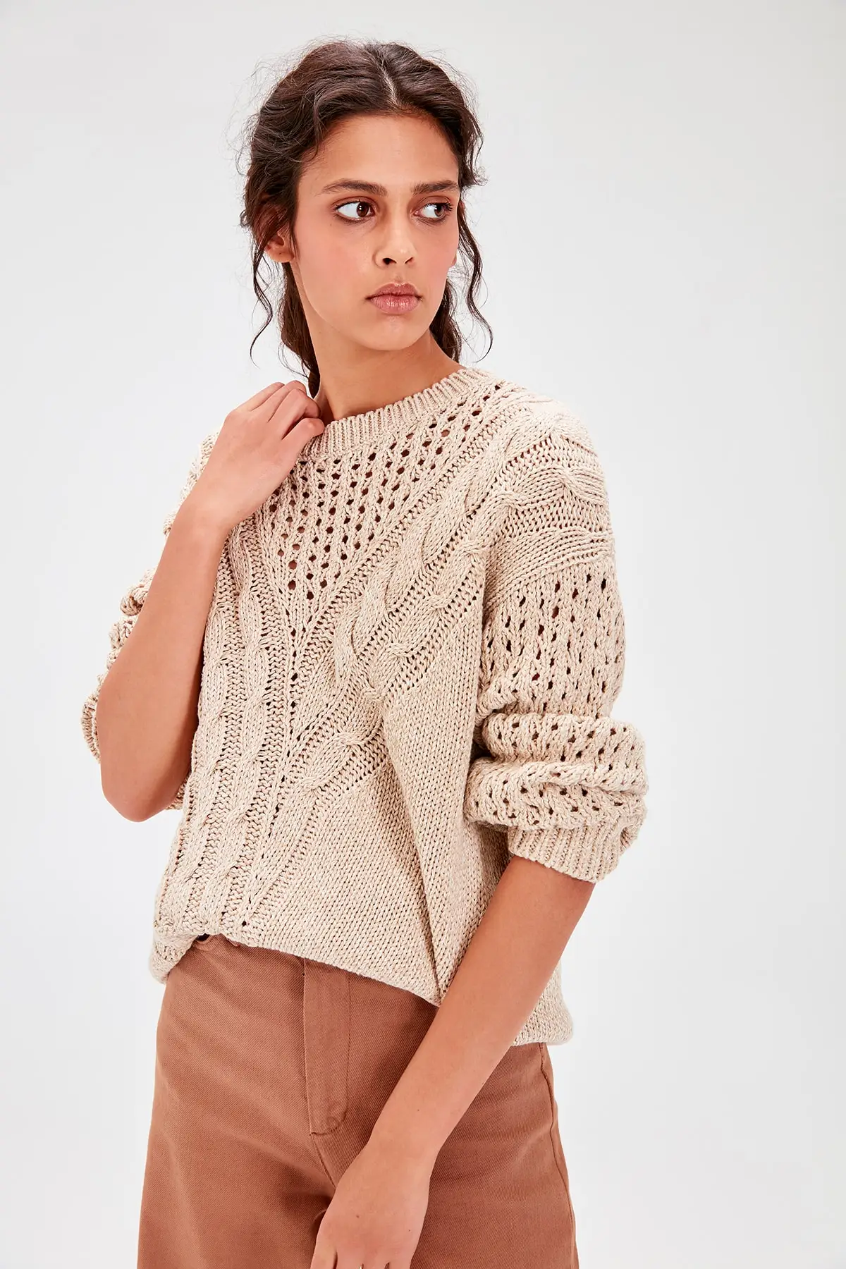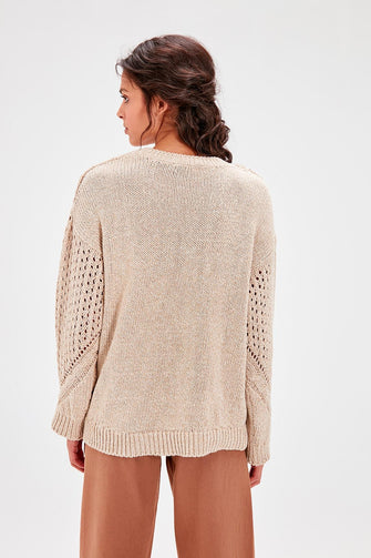 Beige Braided Knitwear Sweater