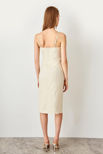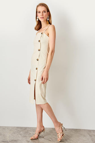 Beige Button Detail Dress