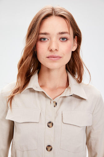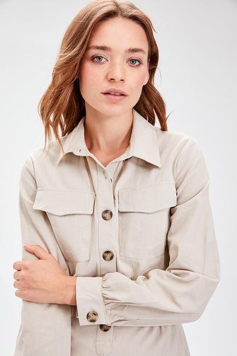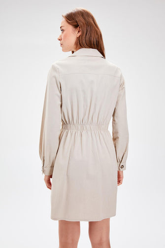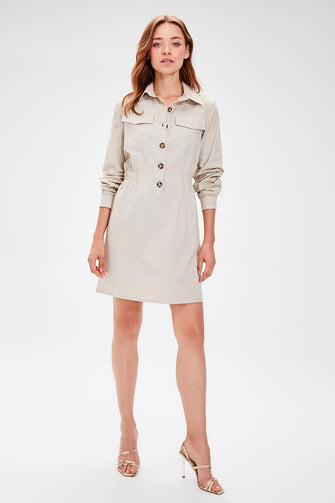 Beige Button Dress