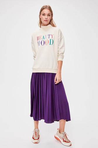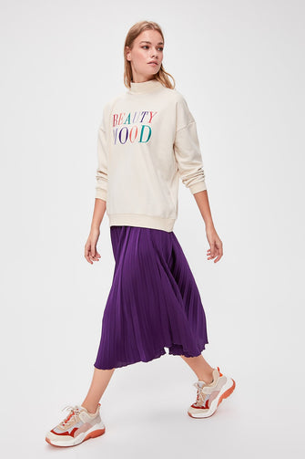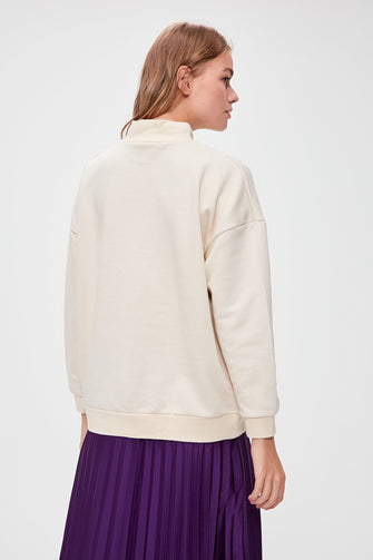 Beige Embroidered Knitted Sweatshirt
