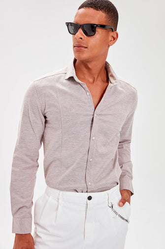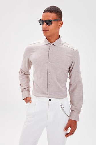 Beige New Men 'S Shirt Collar Extra Slim Fit Shirt
