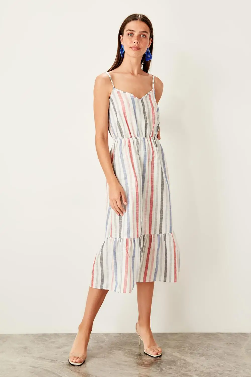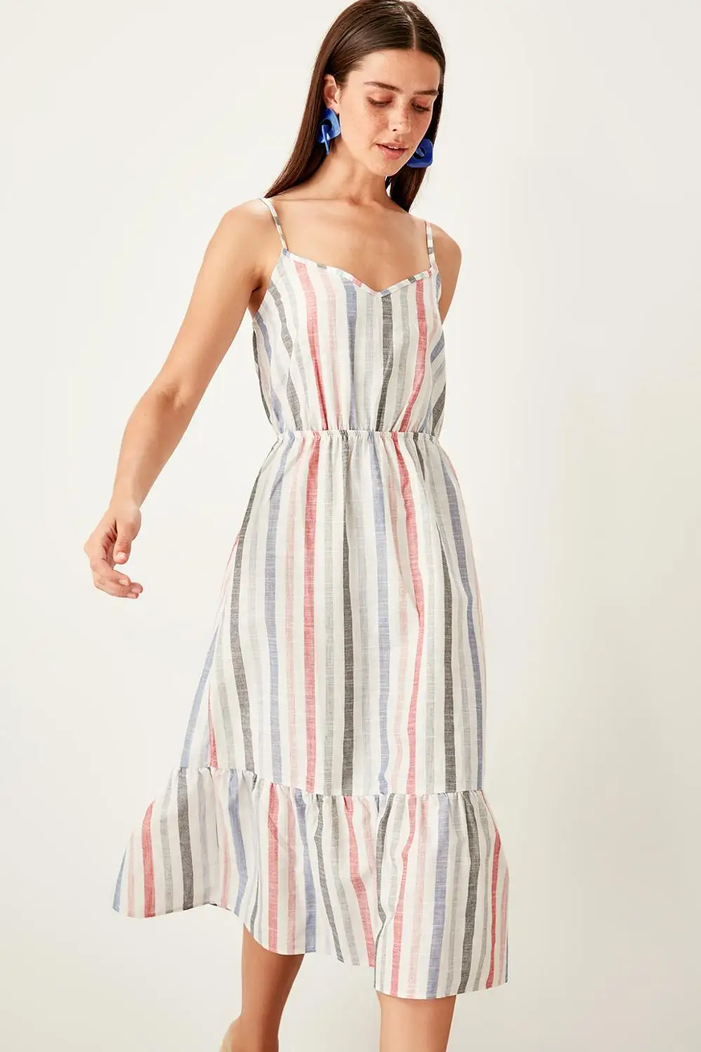 Beige Striped Knitted Summer Dress