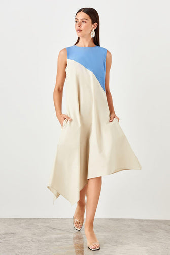 Beige With Color Block Dress