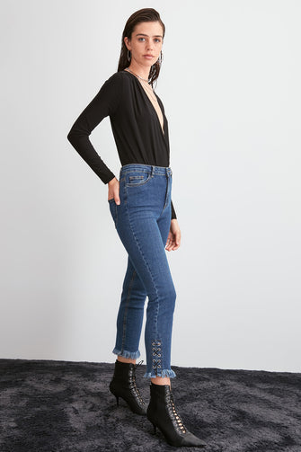 Bird Eye Detailed High Waist Skinny Jeans