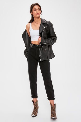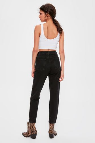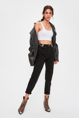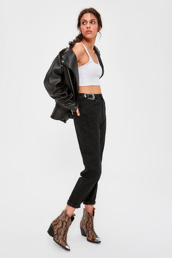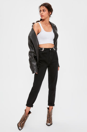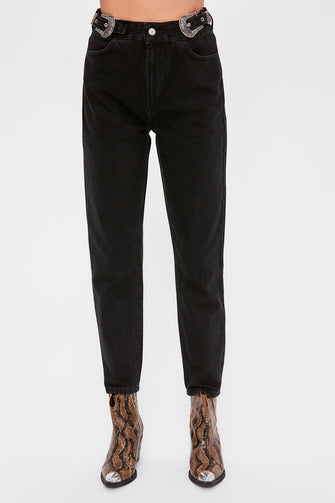 Black Accessory Detailed High Mom Jeans