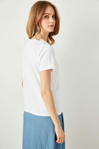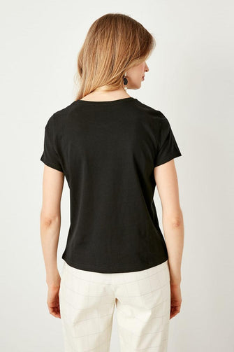 Black and White Bike Collar Cotton Basic T-Shirt