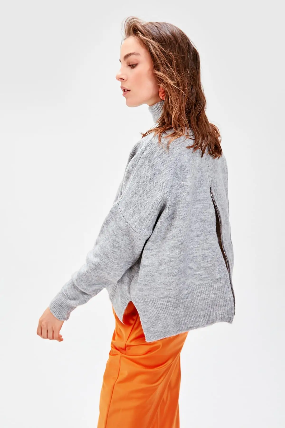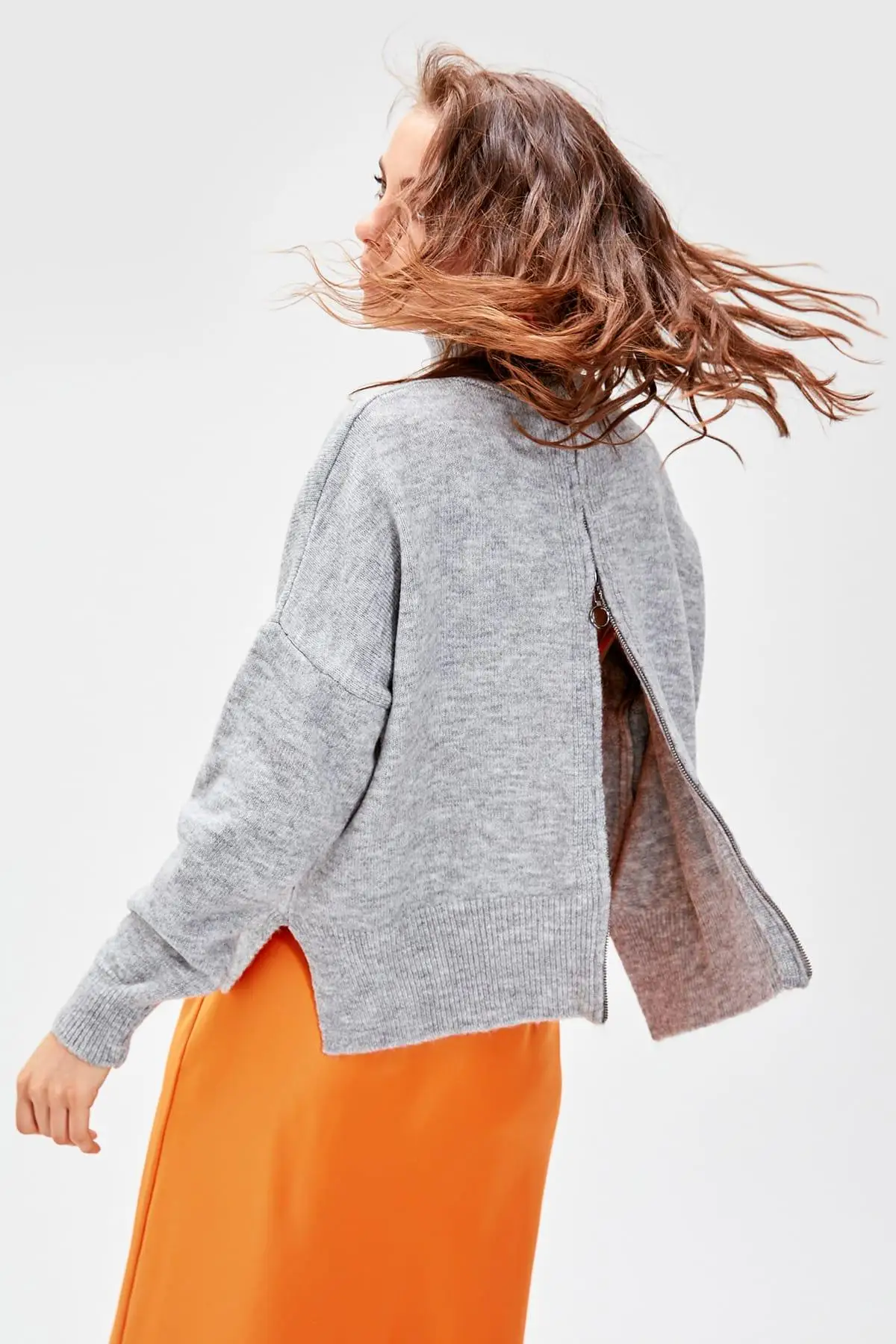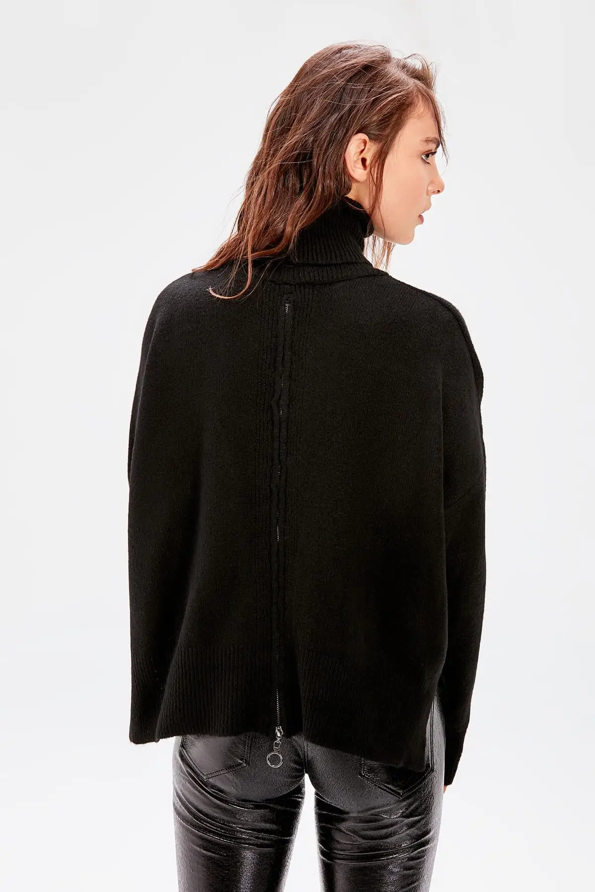 Black Back Zipper Sweater Women Turtleneck Autumn Pullovers