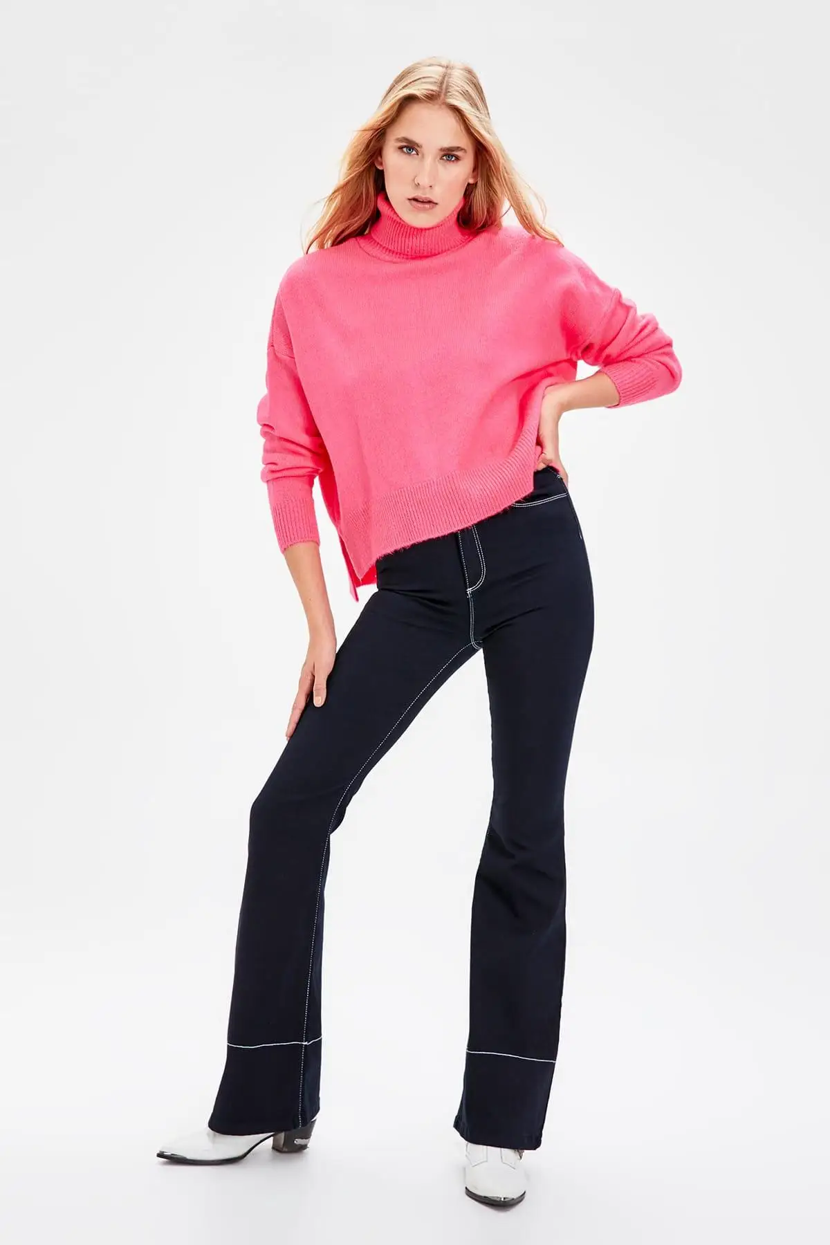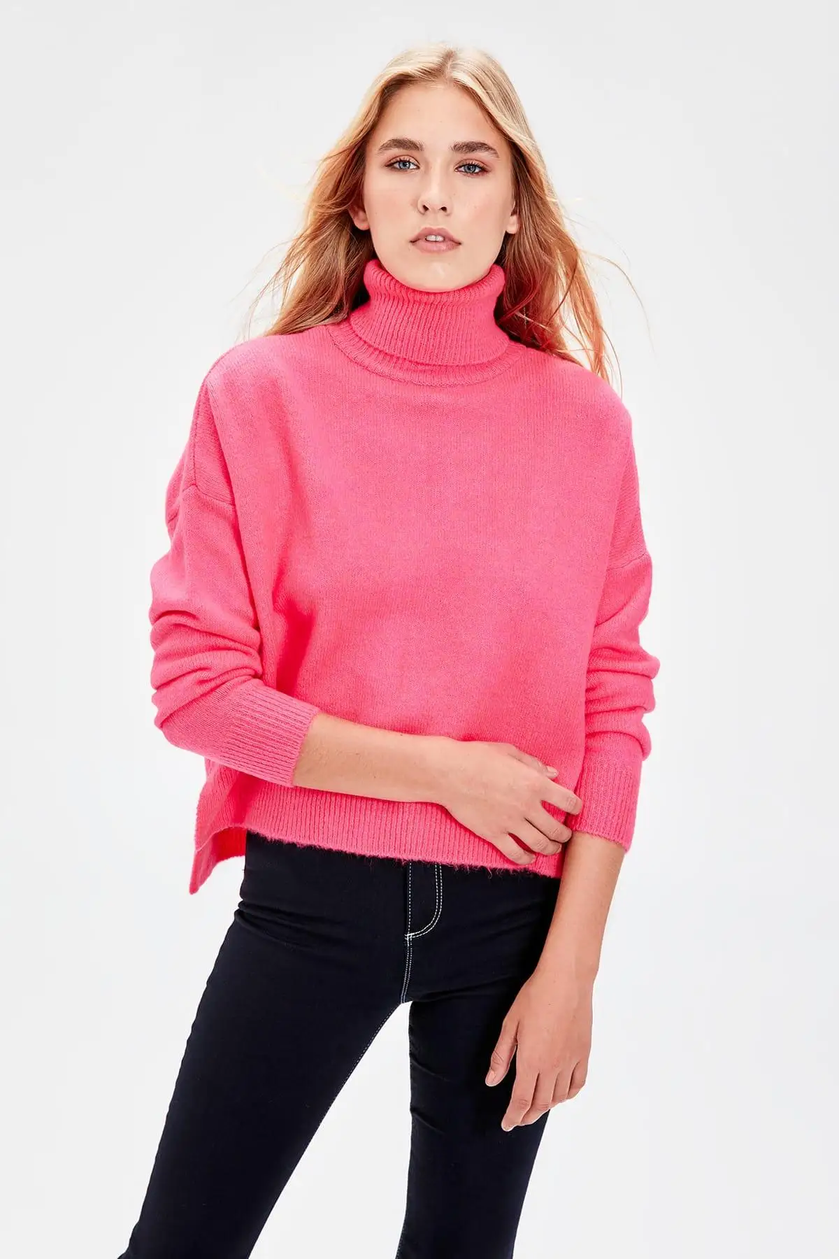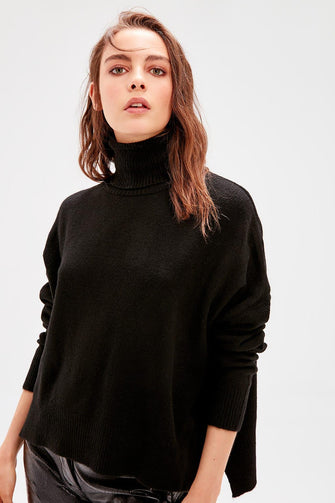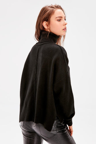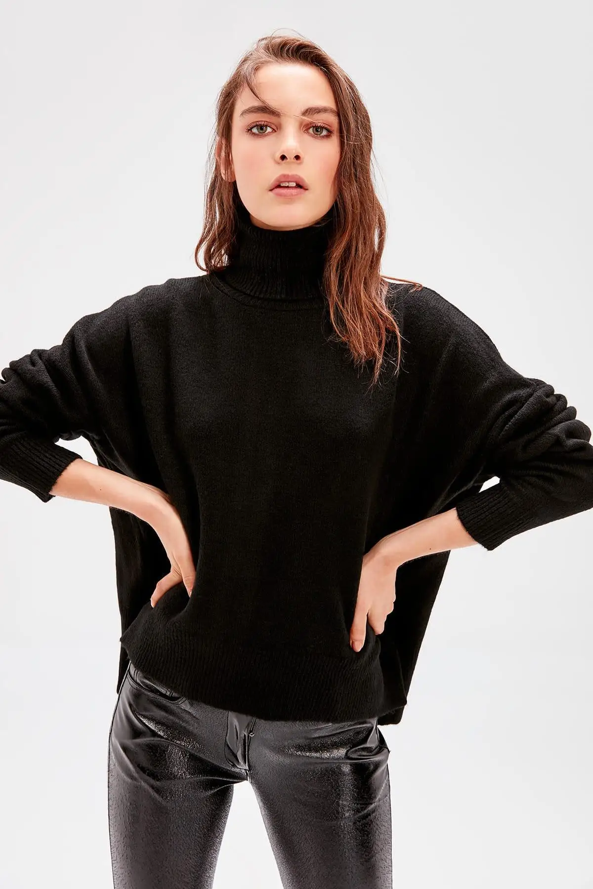 Black Back Zipper Sweater Women Turtleneck Autumn Pullovers