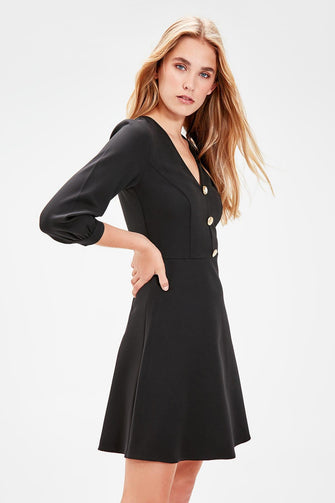 Black Button Detail Dress