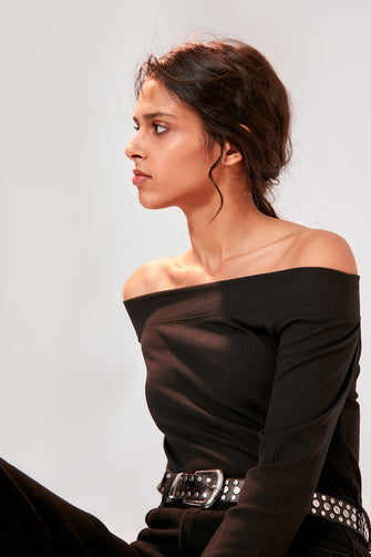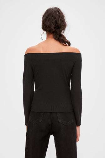Black Carmen Neck Knitted Blouse