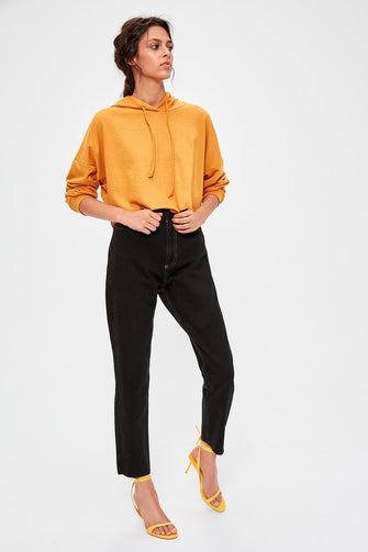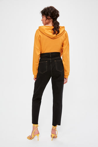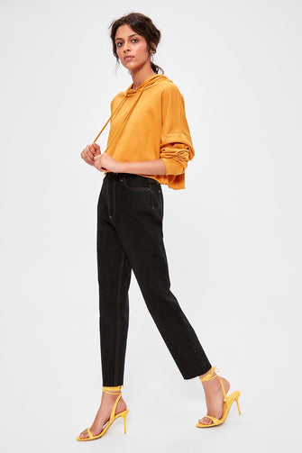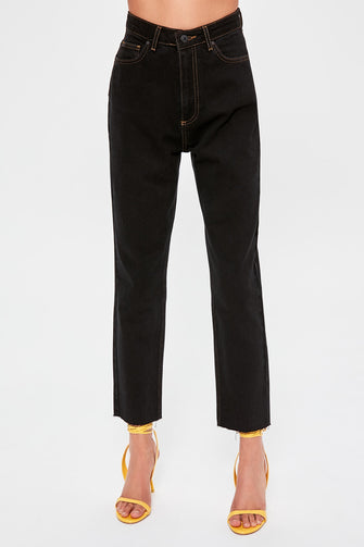 Black Contrast İp Detailed High Bel Mom Jeans