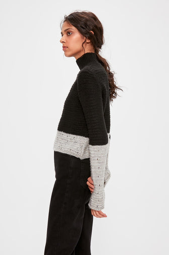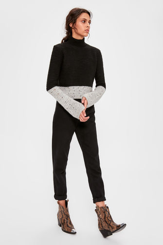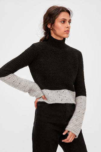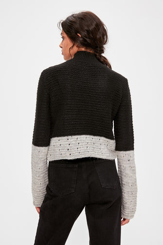 Black Crop With Color Block Sweater Pullover