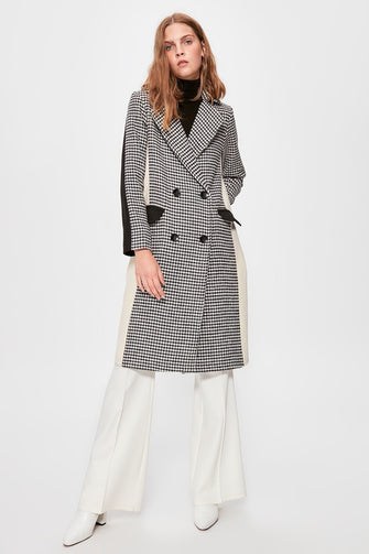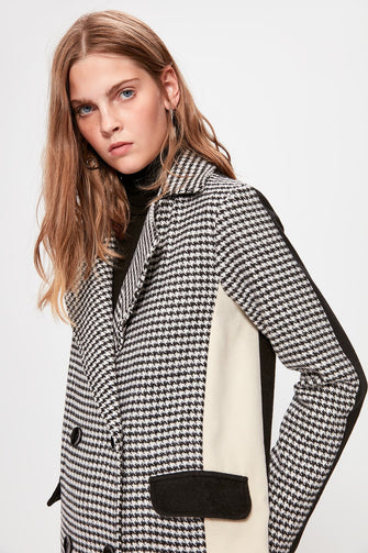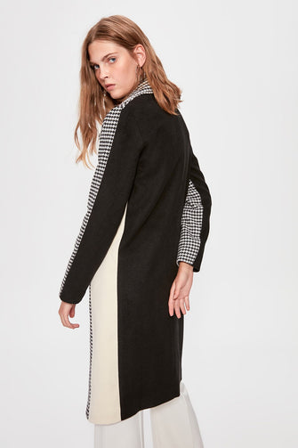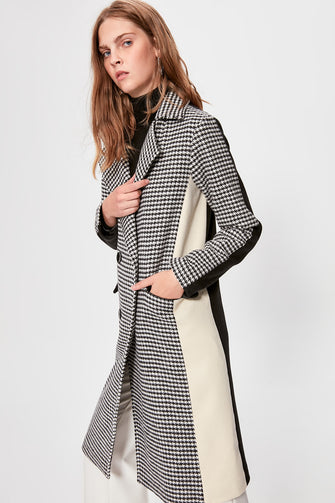 Black Crow's feet Pattern Ecru Color Block Stamp Coat