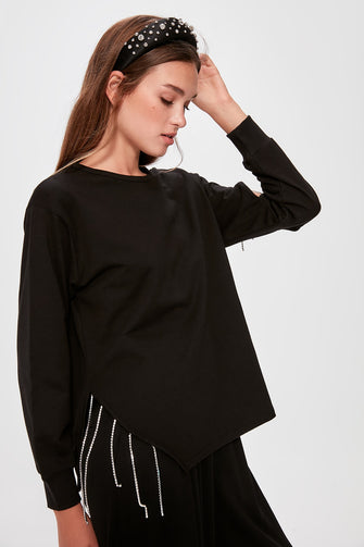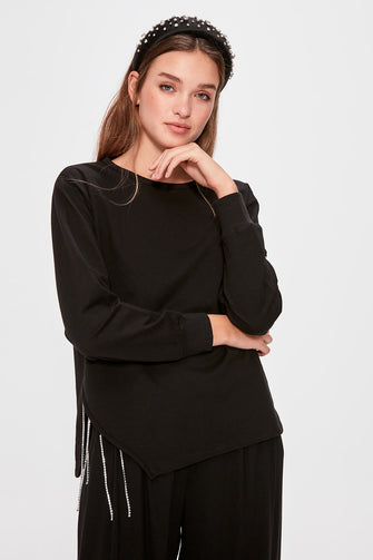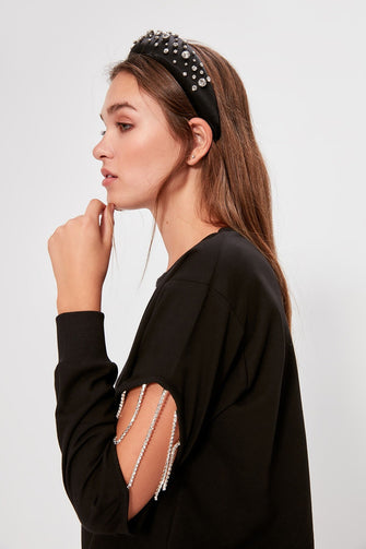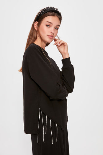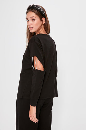 Black Cubic Zirconia Cut Out Detail Knitted Sweatshirt