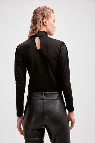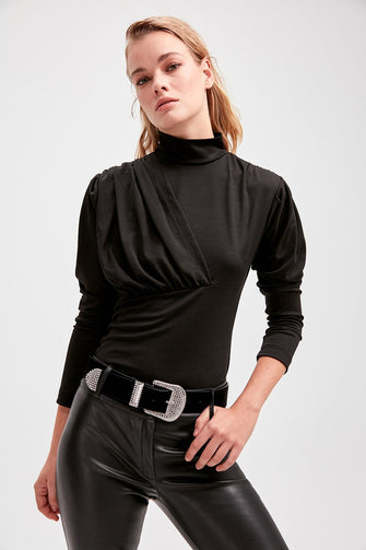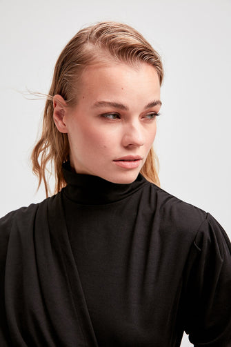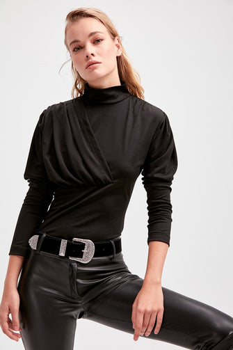 Black Drapeli Knitting Upright Collar Body