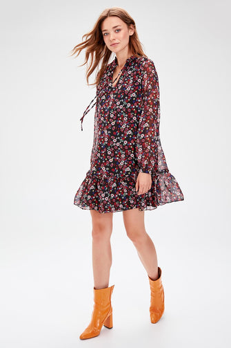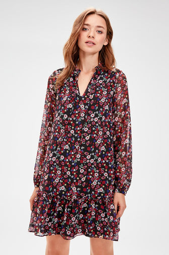 Black Flower Print Dress