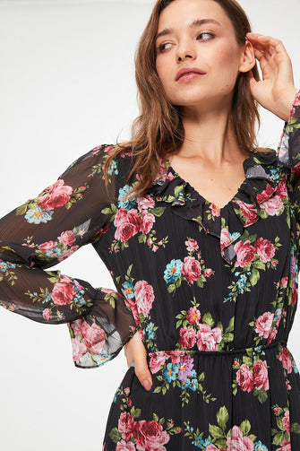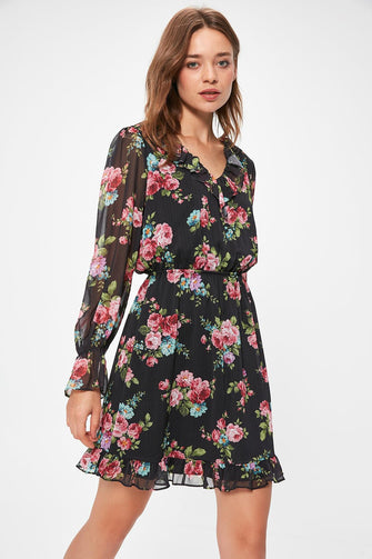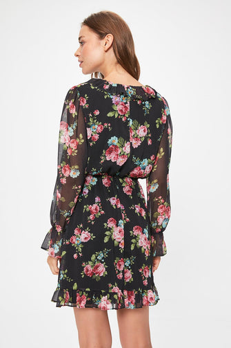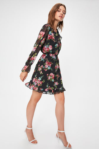 Black Flower Print Dress