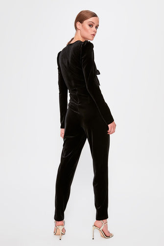 Black Lacing Detailed Double Breasted Collar Jumpsuit