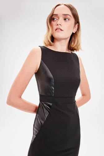 Black Leather Detail Dress