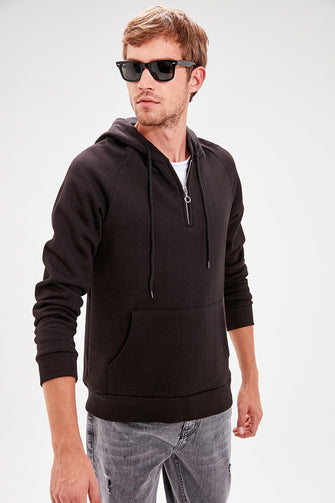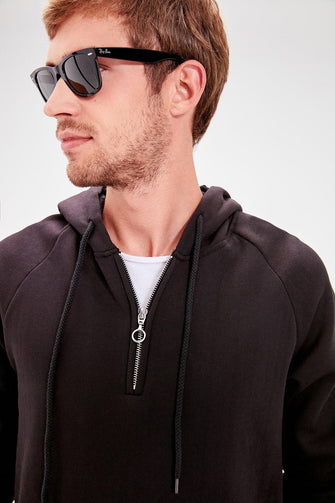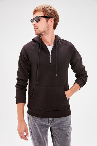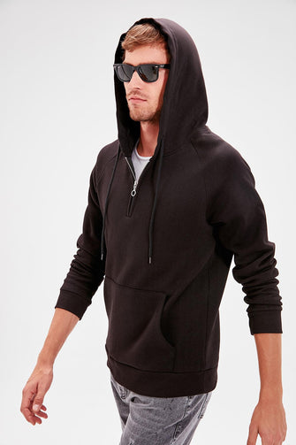 Black Male Hooded Kangaroo Pocket Front Zipper Long Sleeve New Sweatshirt