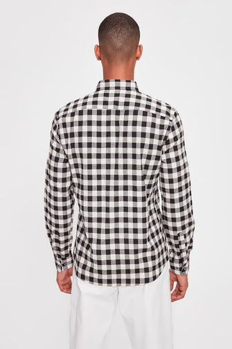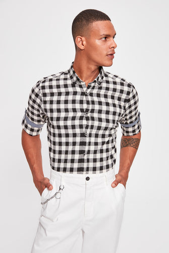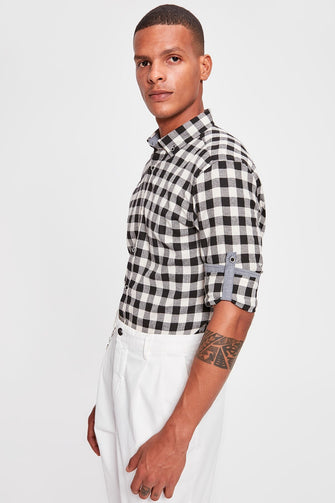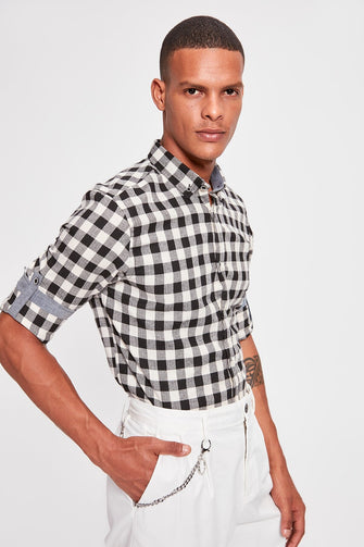 Black Male Plaid Lumberjack Epaulets Slim Fit Shirt New