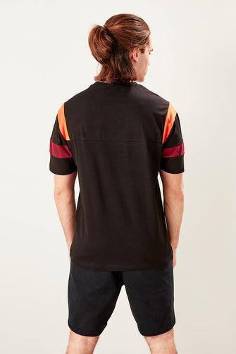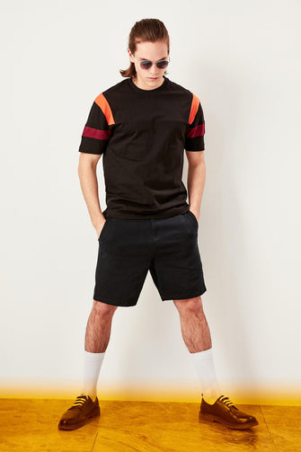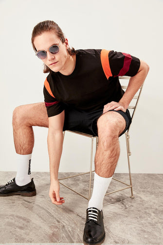 Black Male Sleeves Stripe Cycling Neck T Shirt