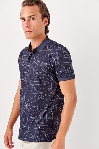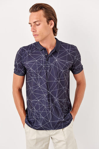 Black Men Printed New Polo Collar T-Shirt