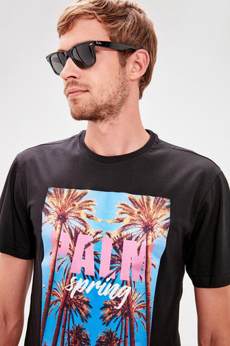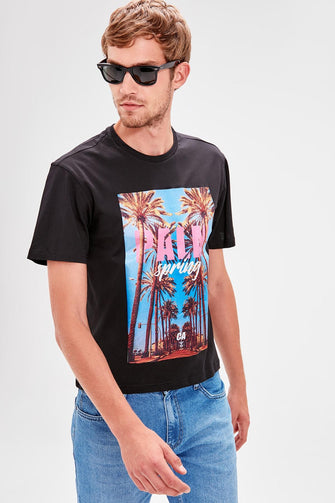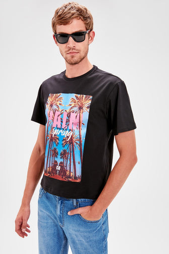 Black Men 'S Cycling Collar Short Sleeve Printed T-Shirt