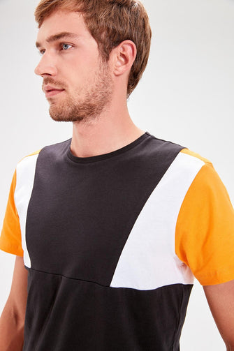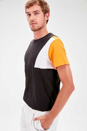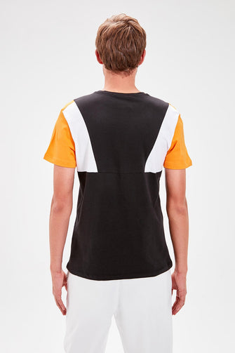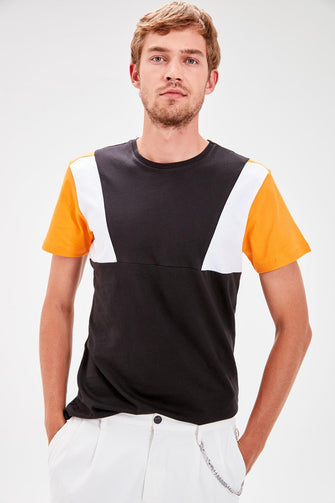Black Men 'S Cycling Neck Short Sleeve Paneled T-Shirt