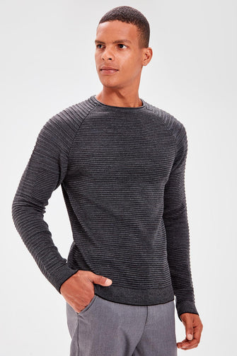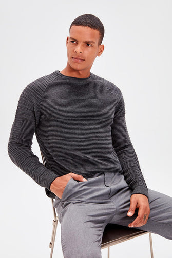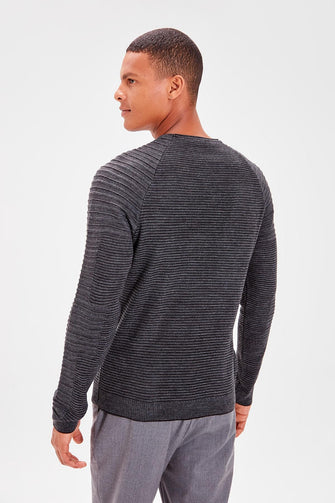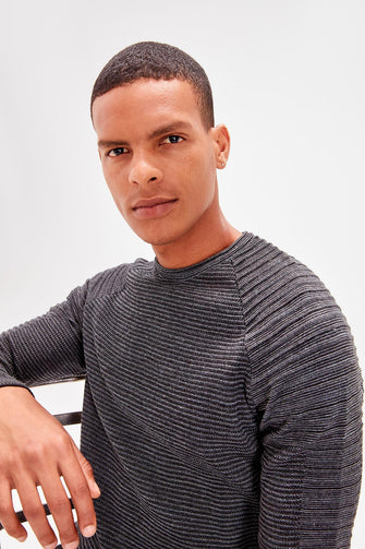 Black Men 'S Cycling Neck Textured Raglan Sleeve Knitwear Sweater New