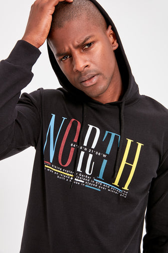 Black Men 'S Hooded Long Sleeve Printed Thin Fabric New Sweatshirt