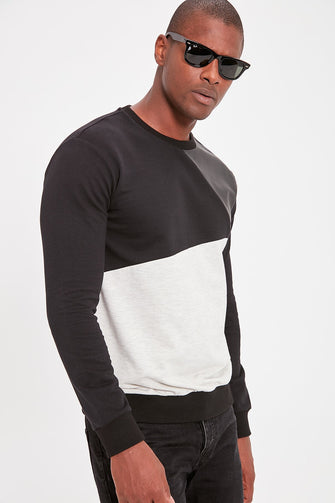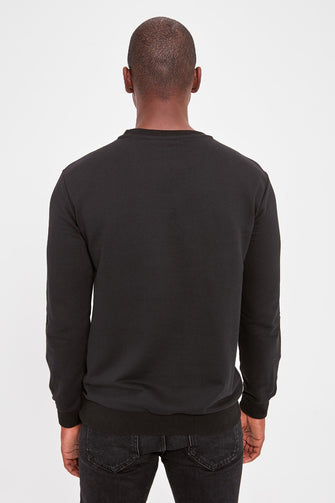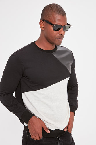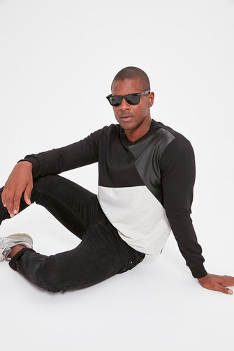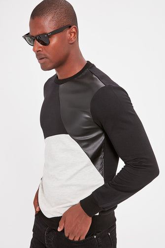 Black Men 'S Long Sleeve Cycling Collar Leather Piece New Sweatshirt