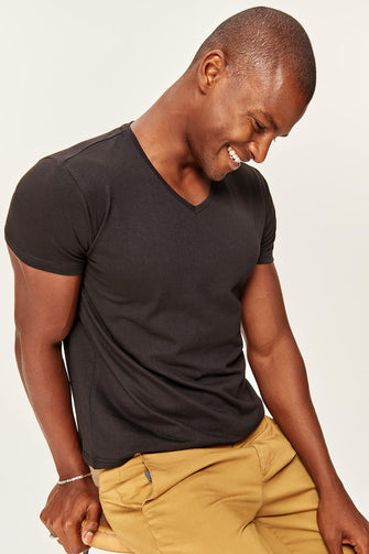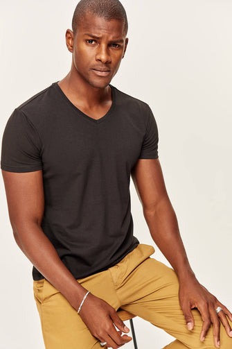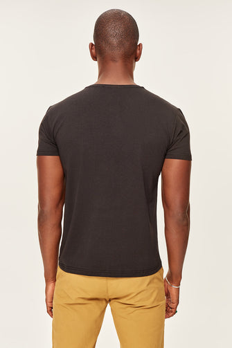 Black Men's T-Shirt Presser - Cotton V Neck TMNSS19BO0002