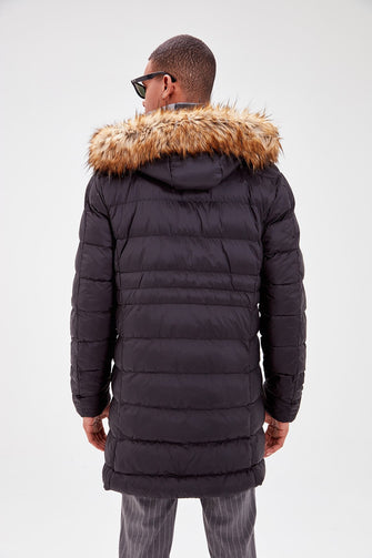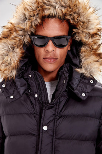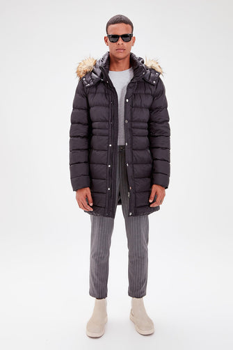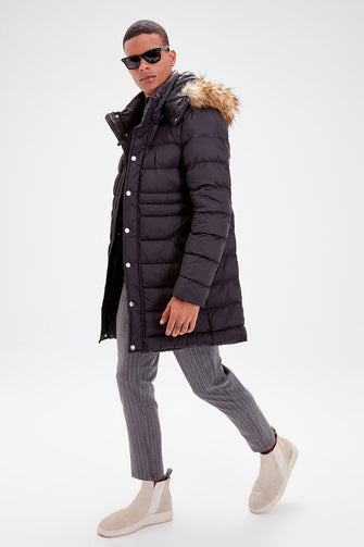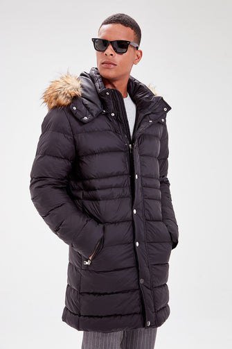 Black New Men 'S Hooded Front Zipper Snaps Pockets Coats