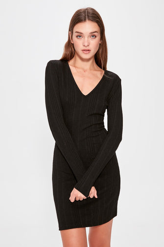 Black Ribbed Knit Dress