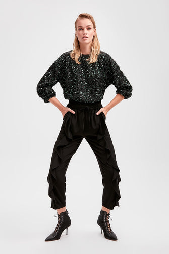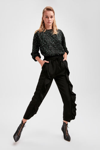 Black Ruffle Detail Pants
