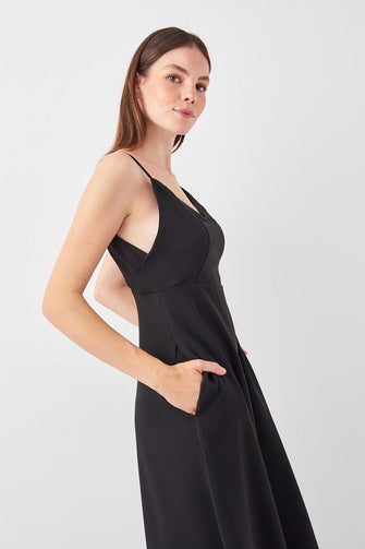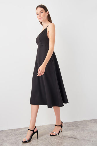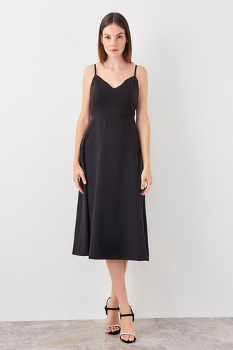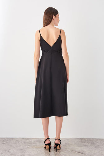 Black Satin Collar Detail Dress