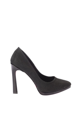 Black Silvery Women Heels Shoes