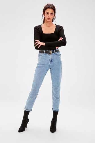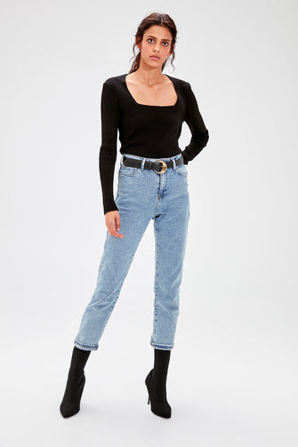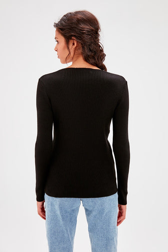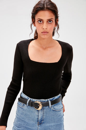 Black Square Collar Basic Sweater Sweater