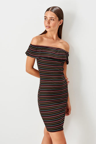Black Striped Knit Dress
