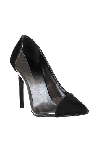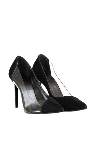 Black Transparent Detailed Suede Women 'S Heels Shoes