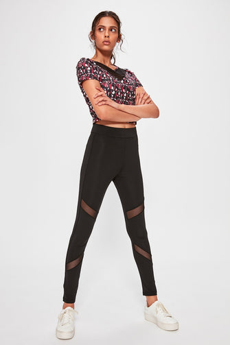 Black Tulle Detailed Sports Leggings
