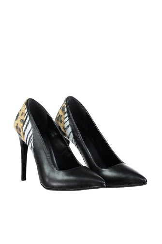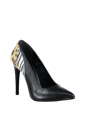 Black Zebra And Leopard Detail Women Heels Shoes