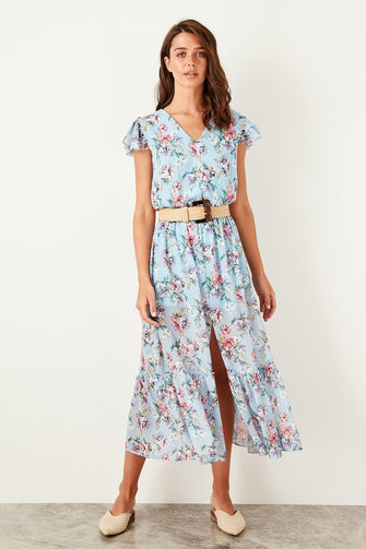 Blue Floral Pattern Dress