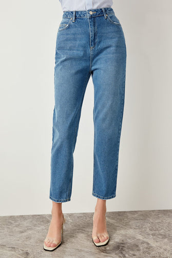 Blue High Waist Mom 80s Jeans Casual Straight-led Denim for Ladies