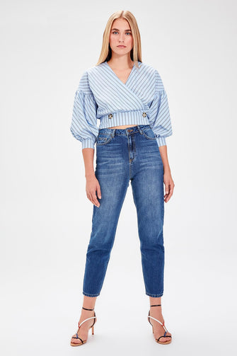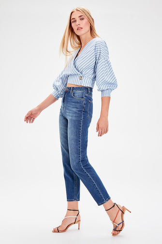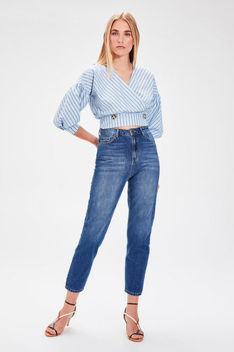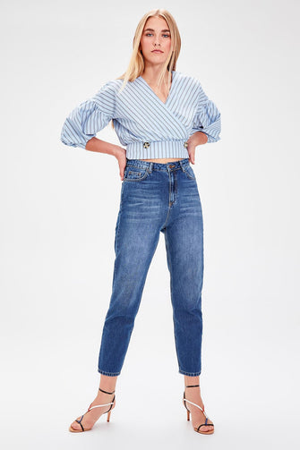 Blue High Waist Mom Jeans