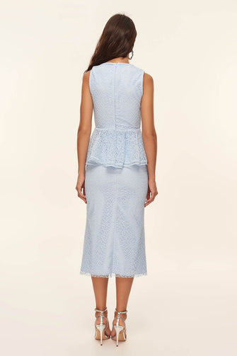 Blue Lace Peplum Chiffon Dress Spilted Detailed