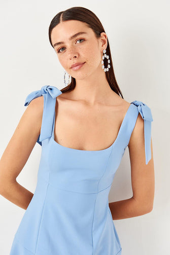 Blue Lacing Detail Dress