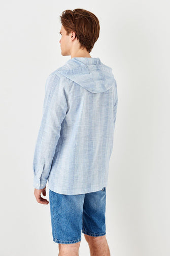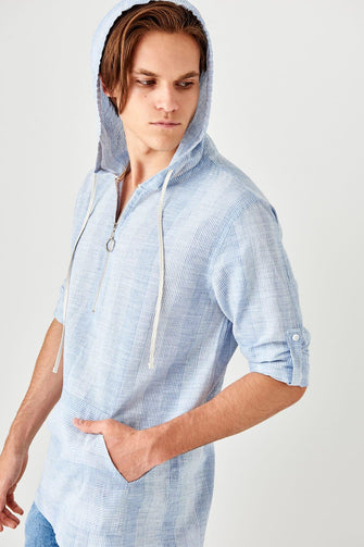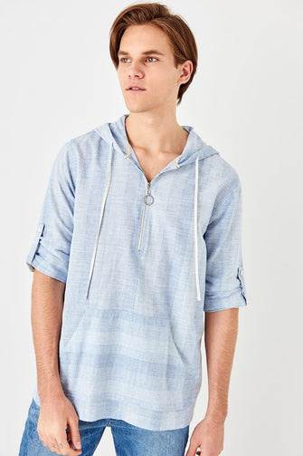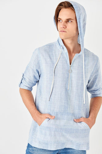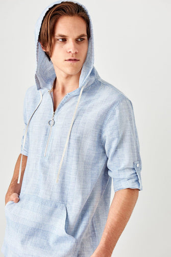 Blue Men 'S Hooded Kangaroo Pocket Shirt