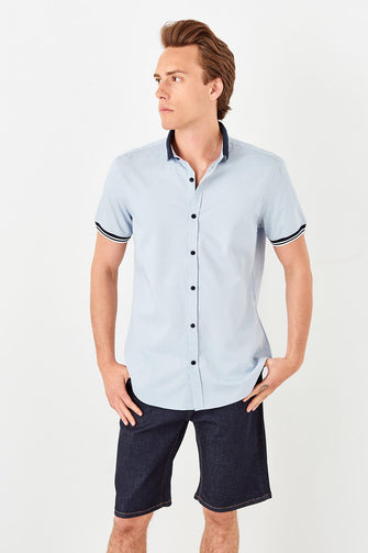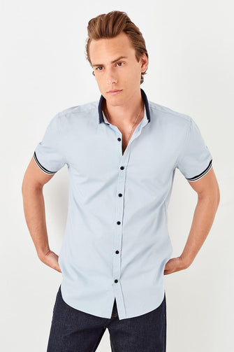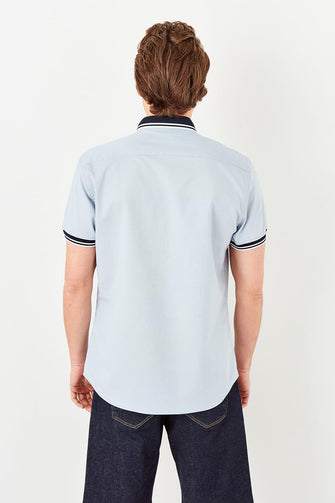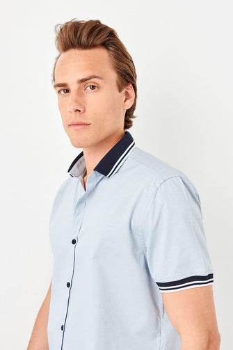 Blue Men 'S Sweater Straped Short Sleeve Shirt TMNSS19FO0059